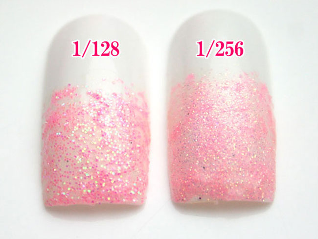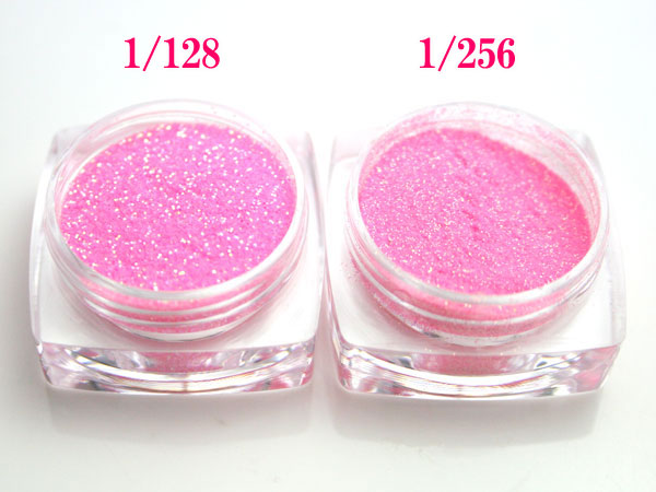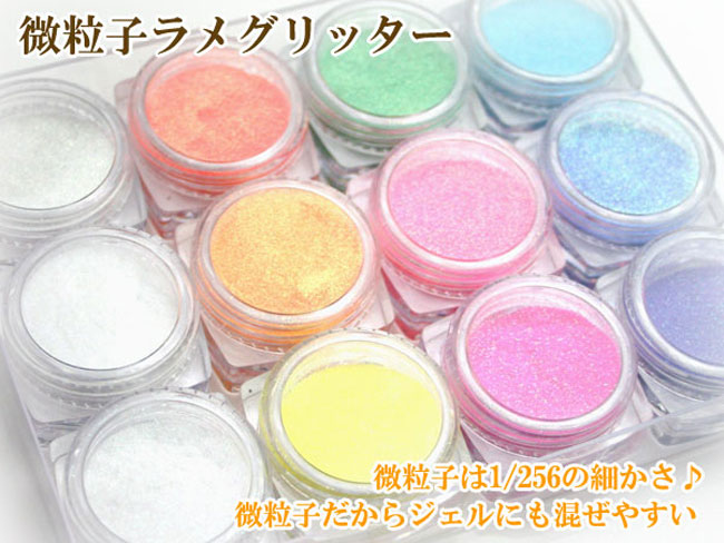 従来のラメグリッターは1/128ですが、こちらのグリッターは1/256ですので、倍の細かさです。サラサラして使いやすいグリッターです。