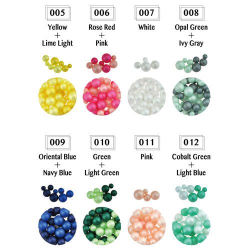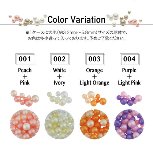 | 通し穴なしの球体パールです。通常のパールの光沢とは少し違う透き通るようなマットな輝きです。サイズは、3~6mm中心ですが、アソートですので、入るサイズ・個数が異なります。あらかじめご了承ください。 | |
