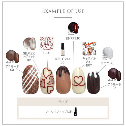 ・ロットにより色に差があります。 ・シールの一部に印刷のズレ、ムラ、歪み、剥がれ、黒い点がある場合がございます。 ・とても薄いネイルシールのため、巻きつきやすいです。ピンセットをご使用の上、やさしく剥がしてご使用ください。 ・未硬化ジェルの上からでも貼れる強力粘着ですが、ネイルシールは密着度で仕上がりが変わります。 シールのふちが浮いているような場合は、未硬化ジェルをふき取ってからご使用いただくと綺麗に仕上がります。 |