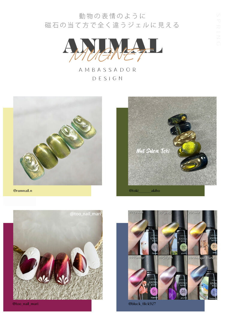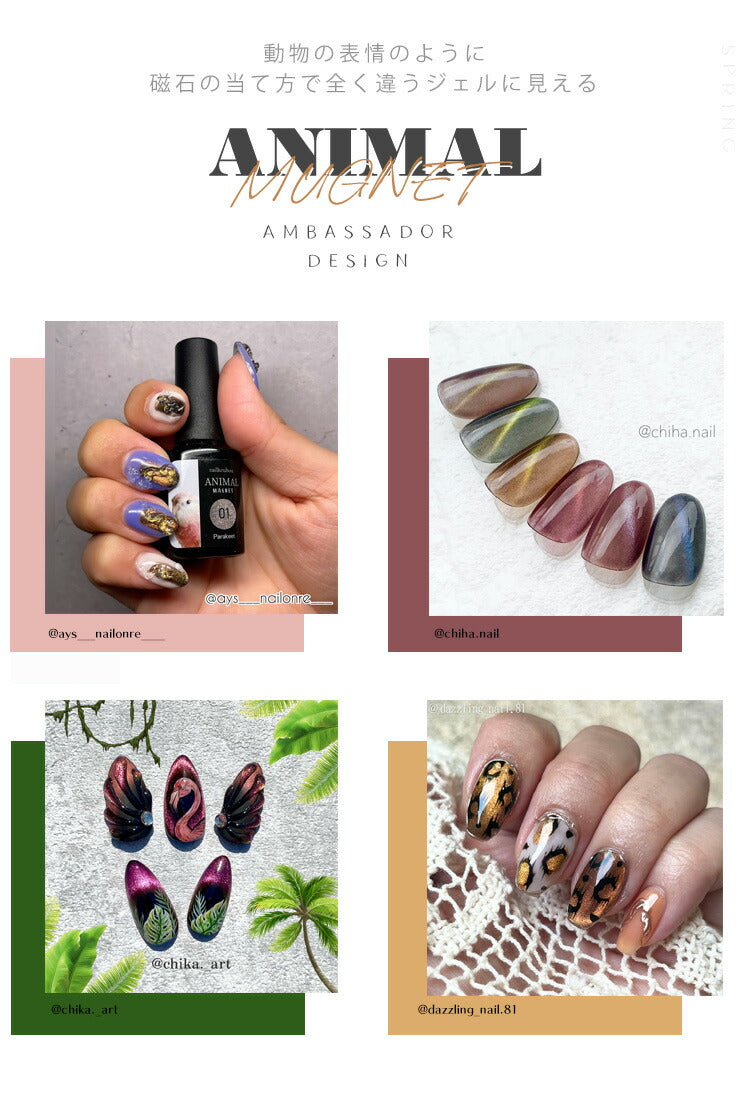 【ANIMAL★MAGNET】マグネットネイル バイカラー くすみカラー シアーカラー カラージェル ジェルネイル クリアカラー カラー ポリッシュ ネイルジェル アートジェル ジェルネイル用品 爪 カラージェルネイル ジェルネイルアート ネイル工房 にわちゃん